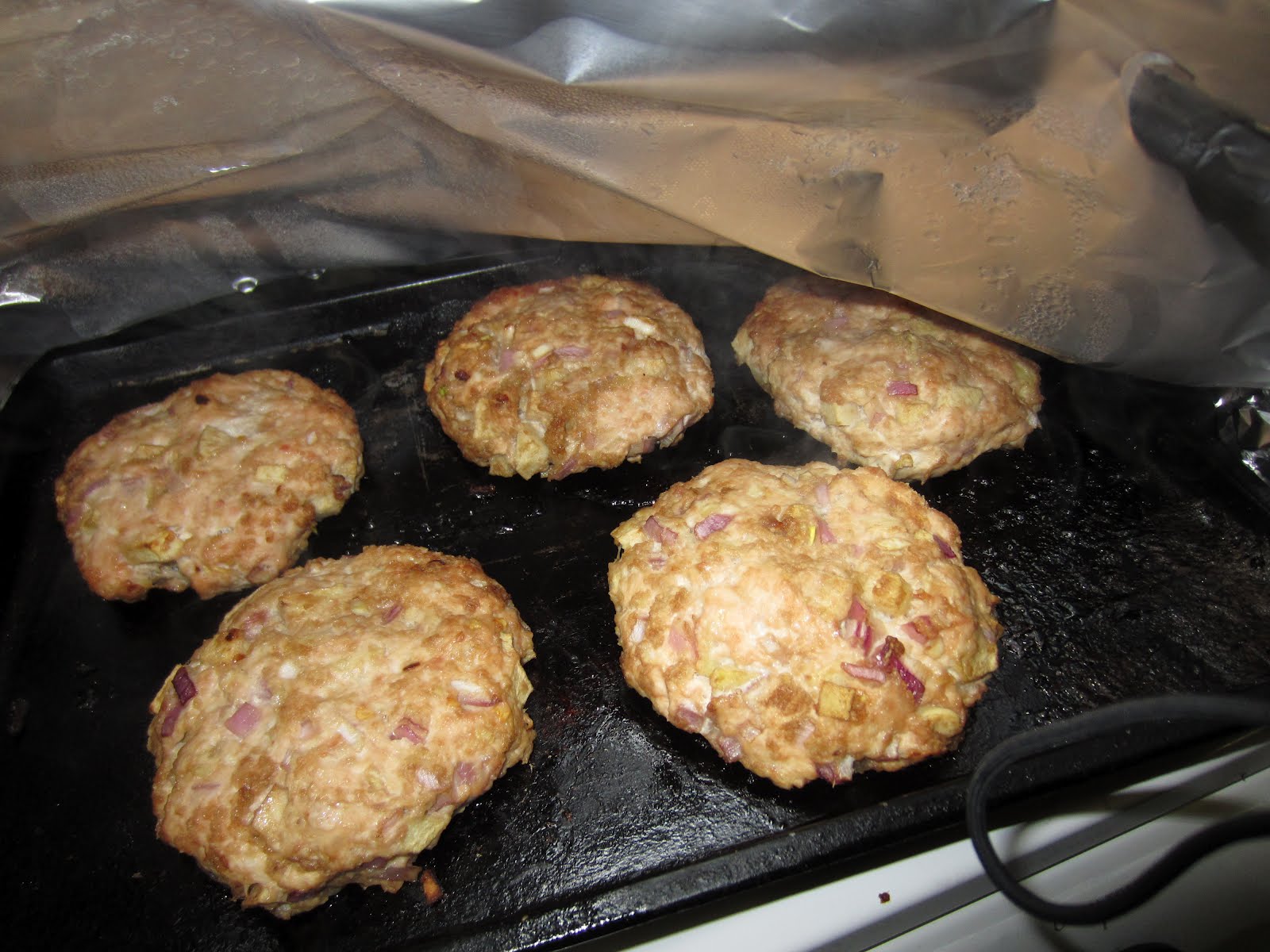 The last night was simple baked turkey burgers with green apple, corn,and red onions with roasted asparagus.