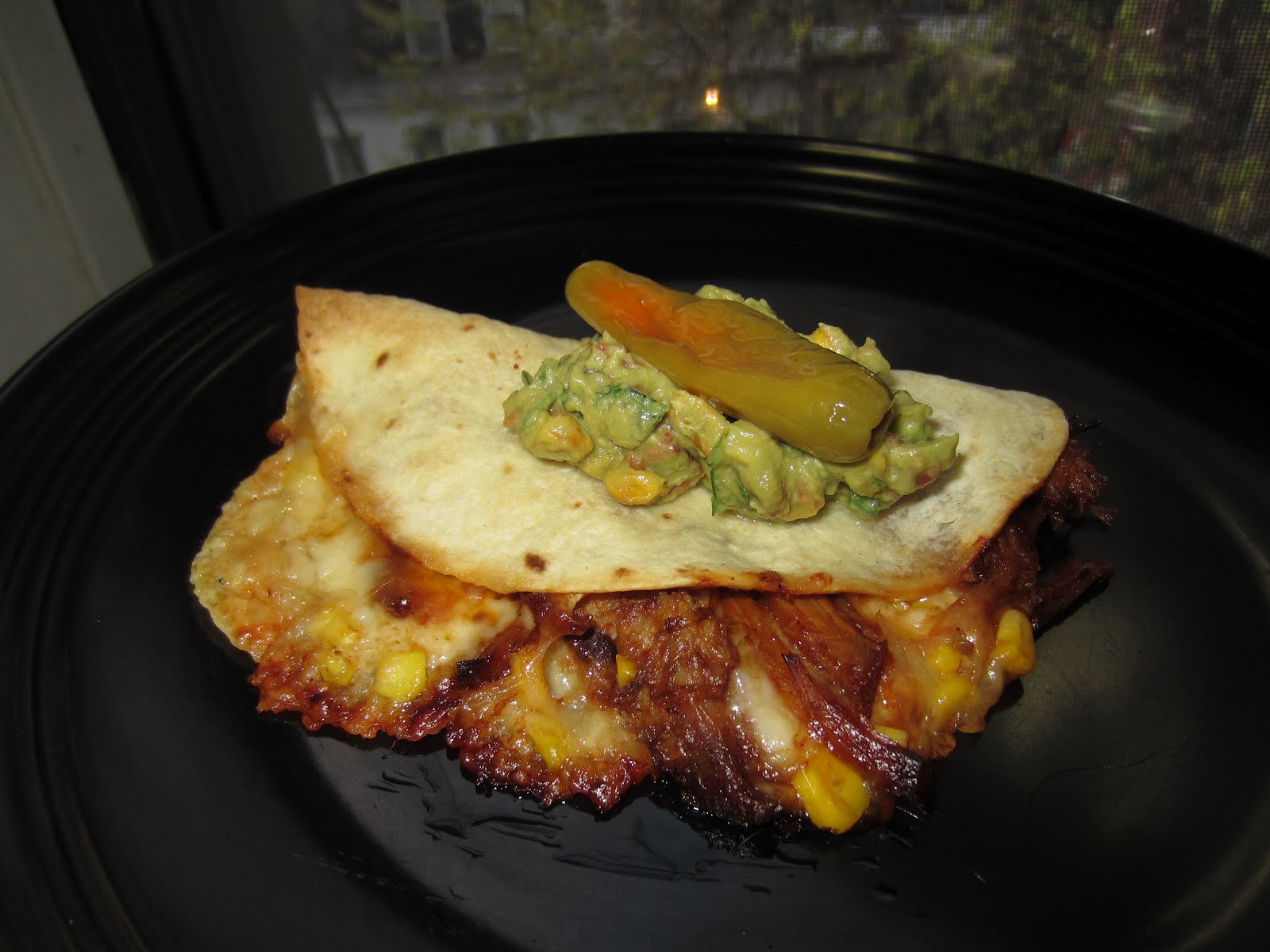 Dried habaneros with sugar, Howlin' Dog multi-spice jalapenos, pizza flavored pepper rings, ginger-sesame-soy serranos. A truly overwhelming abundance of dried peppers. All from his garden and spiced by his lovely wife T. How cool is that?The mucus membrane on P's a-canal was already burning and squirming at the sight of these bags because he knows that I'm gonna use 'em in so many fun ways until he squeals like a little piggie! I always had a good imagination as a child, making up fun occupations and fantasy worlds to live in. So this week I imagined I was running the 'craft' service for P and Big Ed's week-long recording session. I set up a table with nuts, fruit, water and candies. I envisioned walking in with trays of lavish snacks and lots of down time but turns out beer, water and nuts were the only things on the menu for these two brothers who by the way have the smallest or weakest bladders on the planet! But that didn't stop me from trying. I started with my roasted chipotle salsa and whacky guacky. I slow roasted a pork shoulder, Nigella Lawson's 24hr recipe. Figured the smell would get them but P gets freaky focused and doesn't usually let his guests eat when there is beer involved. I shredded it up and used some for pulled pork and some more for quesadillas, froze the rest. Sigh.