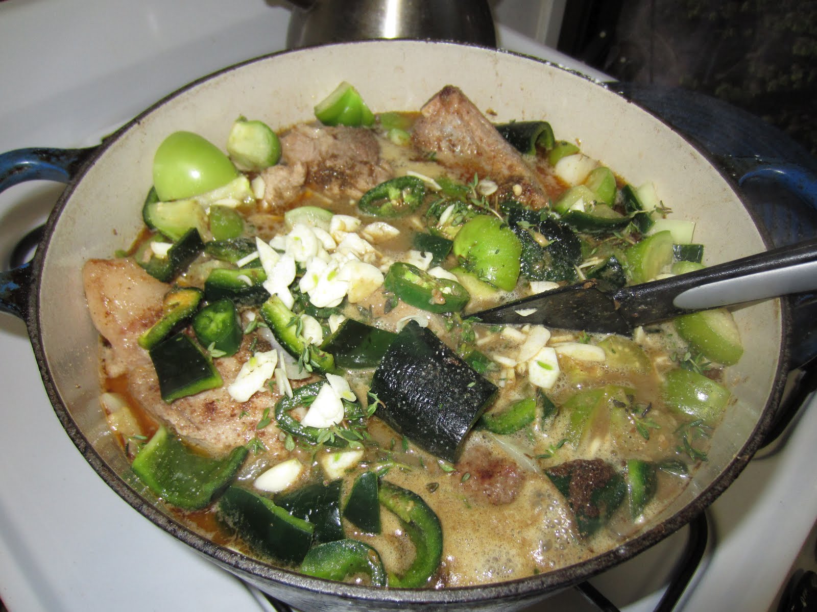 Then I did my version of pork chile verde with lots of tomatillos, green peppers of several varieties slow stewed with lots of Mexican oregano and lime, big chunks of braised country ribs. I believe they had some at night. No big reviews in the morning.