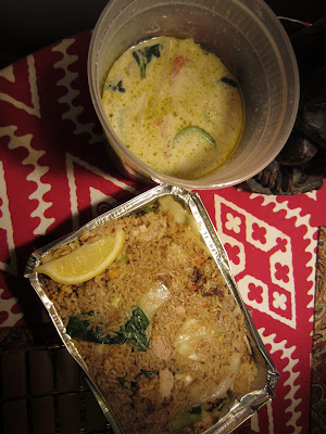 But National did not disappoint tonight. And God bless 'em, it was a Monday when you can really benefit from anything that doesn't suck. Fireworks, slapping, the whole nine yards. The Pork and Pineapple Fried Rice was a dream and a real surprise. The Beef with Green Curry is the real super star. The Kang Kyo Whan Nuur. With just the right heat, lemongrass, coconut, curry. And the vegetables, the eggplant, plenty of bamboo shoots, carrots and peppers and finally the thin sliced beef.