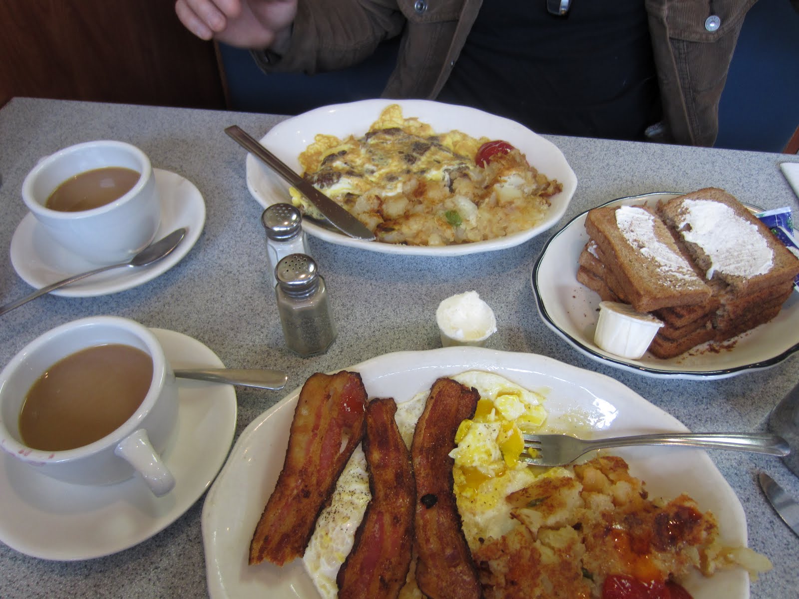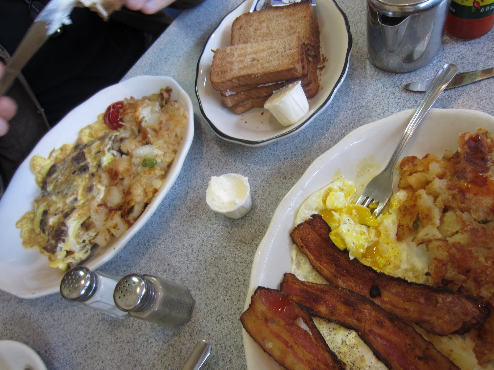 Another lovely breakfast at Academy Diner. From the free-flowing coffee to whipped butter and jelly for our toast, potatoes three ways or no? Then how about grits? It's your choice because its a diner. Right down to the crispy bacon or omelets that only the grill can produce and the right kind of running eggs.