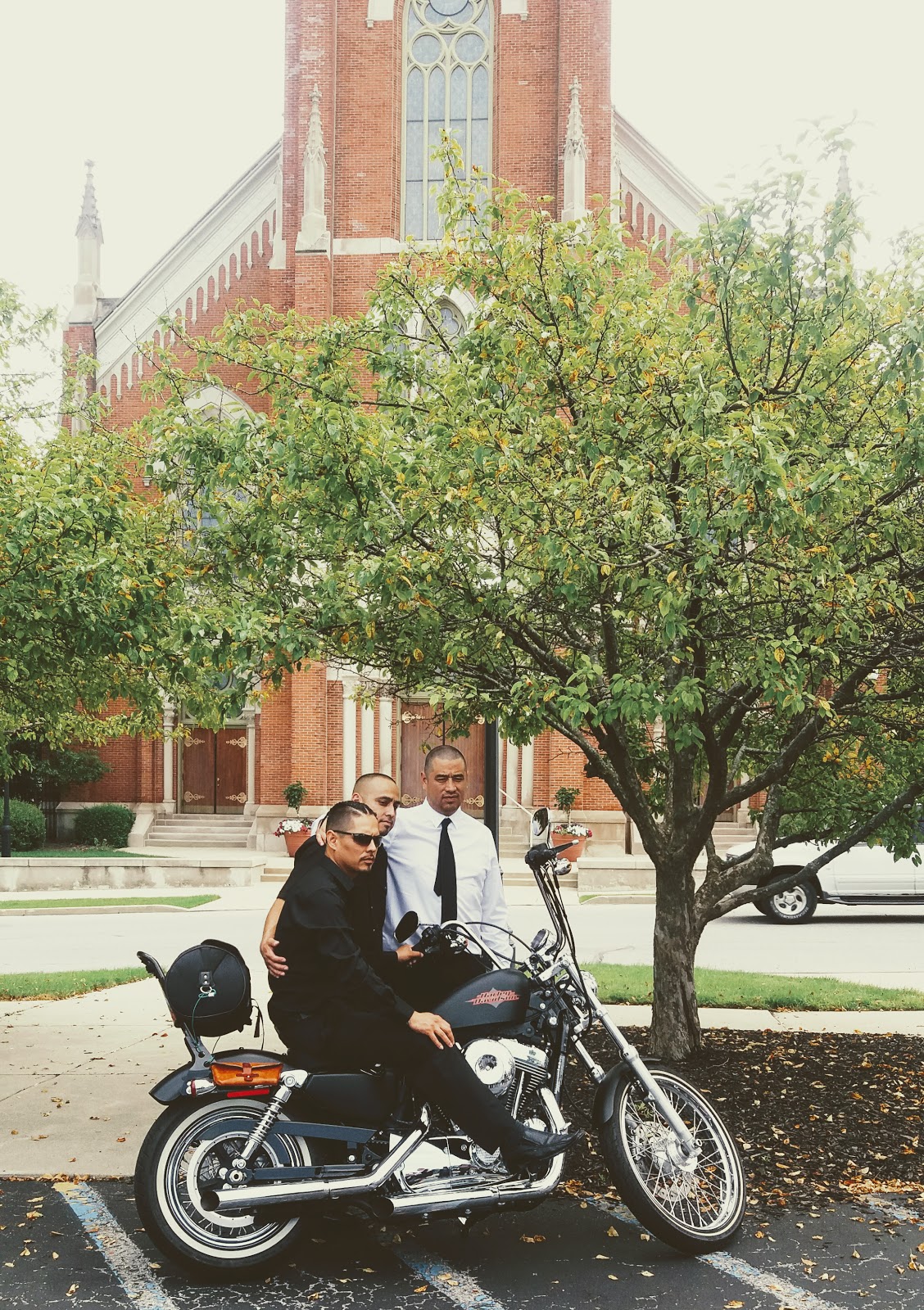 A ritual now. Immediate family have a chance to say final goodbyes to brother. The casket is sealed. The priest says we need to send him back to God. Ave Maria was sung like an angel. I held his daughter's hand. There was comfort from friends and family. The mass is over. Off to the burial site. Oh my God, my brother Ernie is leading the procession on David's Harley. My heart drops to the soft grass.