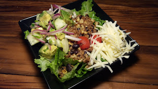 I've made hundreds of what I call taco salad bowls. This one had a slight upgrade with a pickled cucumber avocado and red onion. It gave such a pop to the chili seasoned meat, beans and corn. That tiny idea of adding marinated elements in vinegar instead of lemon or lime dressing, changed everything. A new twist. But relatively speaking, nothing too exceptional. But just the mention of a taco bowl or salad does it for me though, so I'm pretty easy that way.
