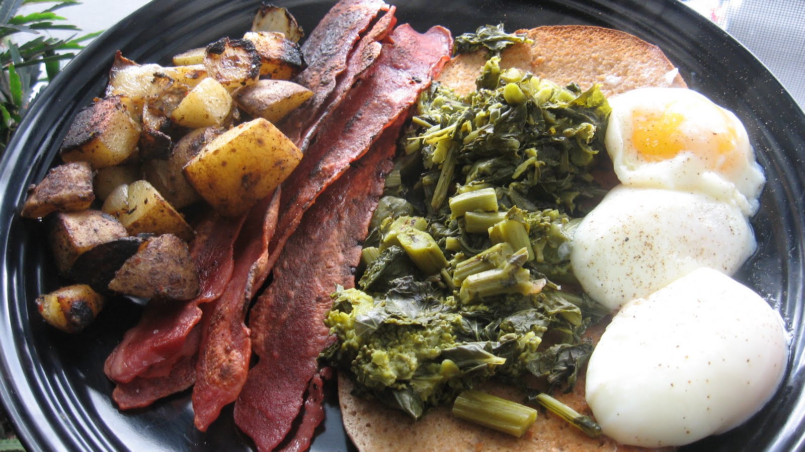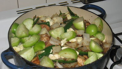 I made us a nice big breakfast with potatoes, toast, poached eggs, left over broccoli rabe, turkey bacon...the usual. After breakfast I made a pork chili verde stew that was extra saucy...