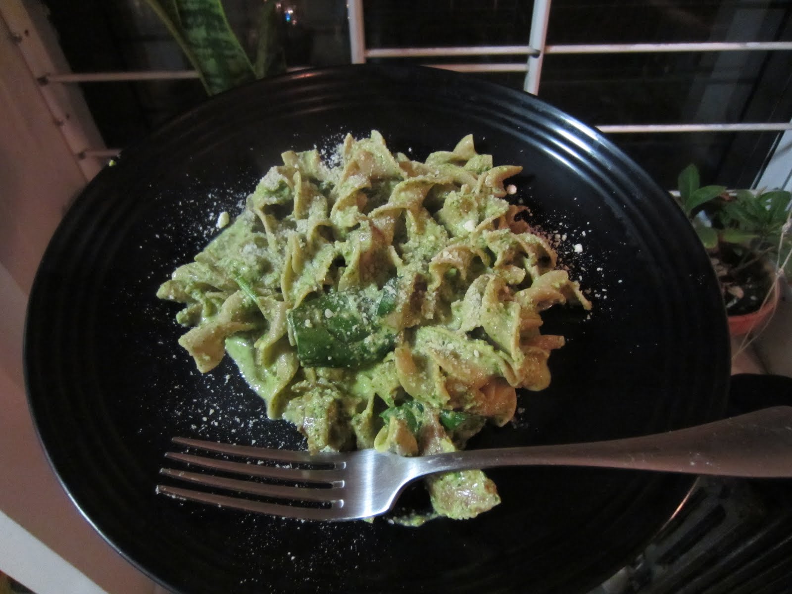 After a solid breakfast, thoughts turned to dinner. Isn't that something? Sometimes this girl has got to fill some voids with food. I know P will be writing all night. I needed something. I needed creamy but also a bright taste. Arugula pesto pasta with baby spinach!