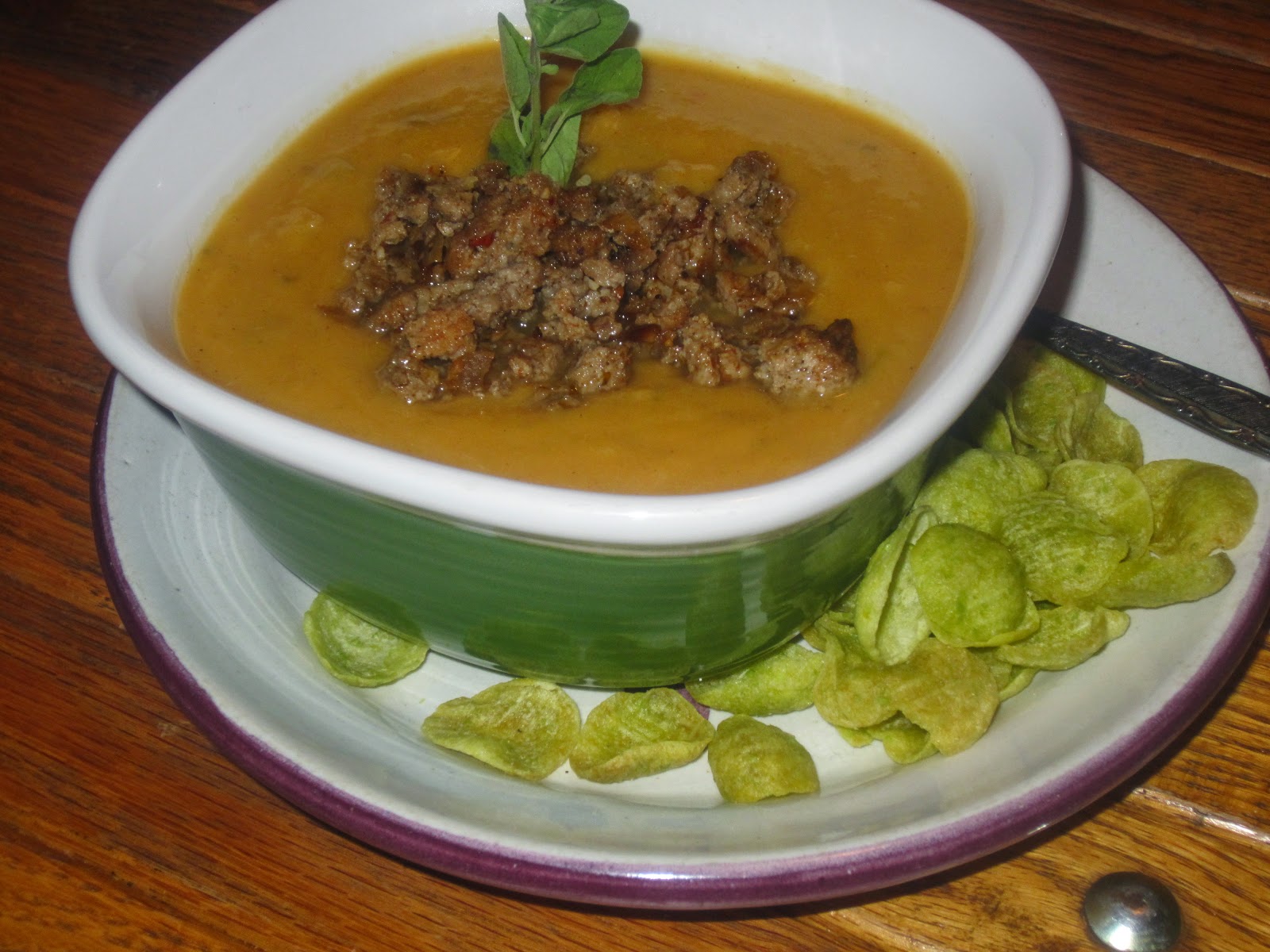 Because when I'm free, I'm happy creating things like this homemade sweet potato soup with crumbled sausage on top and after the picture, toasted walnuts which really made the soup!