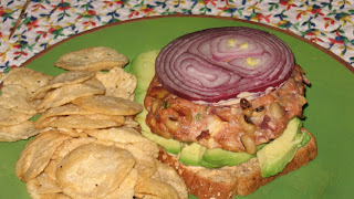 Okay, I baked these burgers because I wanted to see if the flavors on the veggies taste noticeably different and taste roasted. Verdict - baked is very nice. The burger set up really firm and it was delicious! I served with some chipotle mayo and sliced avocado over a slice of oat bread and topped with a big slice of red onion and some black pepper and salt Pop Chips. These don't need no stinking cheese.