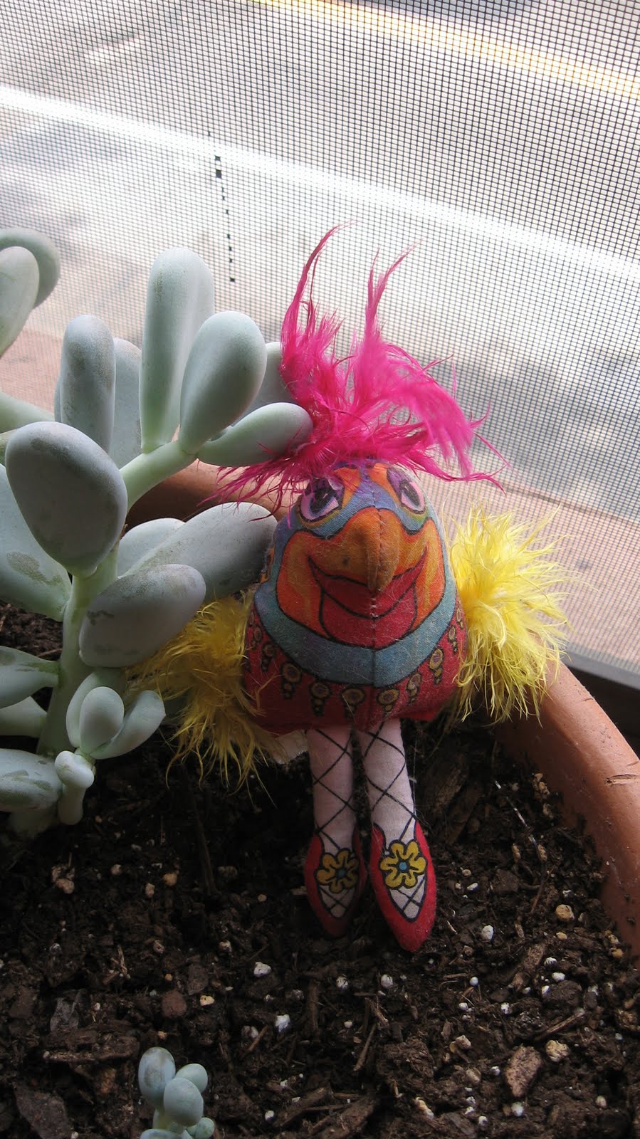 My cat Mona who we call Monkey has a toy named Mrs Pickles. From what I can tell, she loves that toy. Mrs Pickles has all the bells and whistles, bright clothes, feathers, cat nip belly. But Monkey doesn't play with her often, instead she likes her mice and balls. She seems to kick Pickles around now and then and likes to know she's around.