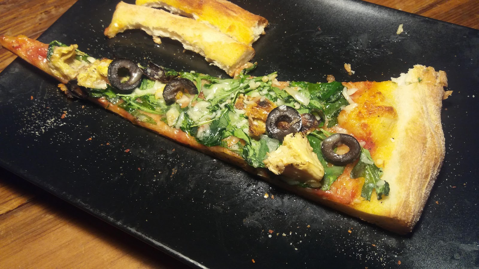 I don't know that I have a compulsive disorder but I am writing this on 4/16/20, about 2 years later amid the Coronavirus Pandemic because I have some very bizarre need to keep this lifeline of a blog alive and in precise order. It feels like a disservice, to who I don't know, but I don't like deleting any post. If I at one point bothered to upload pictures to this date, it either means the meal was amazing, or the day was noteworthy. I usually write in the notes little hints for myself to provoke my memory, but this time I did not. So I can only share what I do know. I know that today, Lean Crust pizza is closed due to the city shut down. I think they could have made a fortune with take out only but they made the decision too quickly to close as did so many local restaurants. So now the only way to get a good pizza is to pay 3 times what you would have or you can buy the supplies and make it yourself. I can also tell you we used to get 5 slices of different varieties and cut them in two and we'd call it a pizza party. Just that power of suggestion always made it so. Well, party may be overstating it. We'd generally be happier, as people tend to do when they're eating pizza. And P would be forced to hang out because half the celebration would be to choose which slice would be next and discuss why we dug it so much. Like a wine tasting. Sometimes the slices would be super creative.