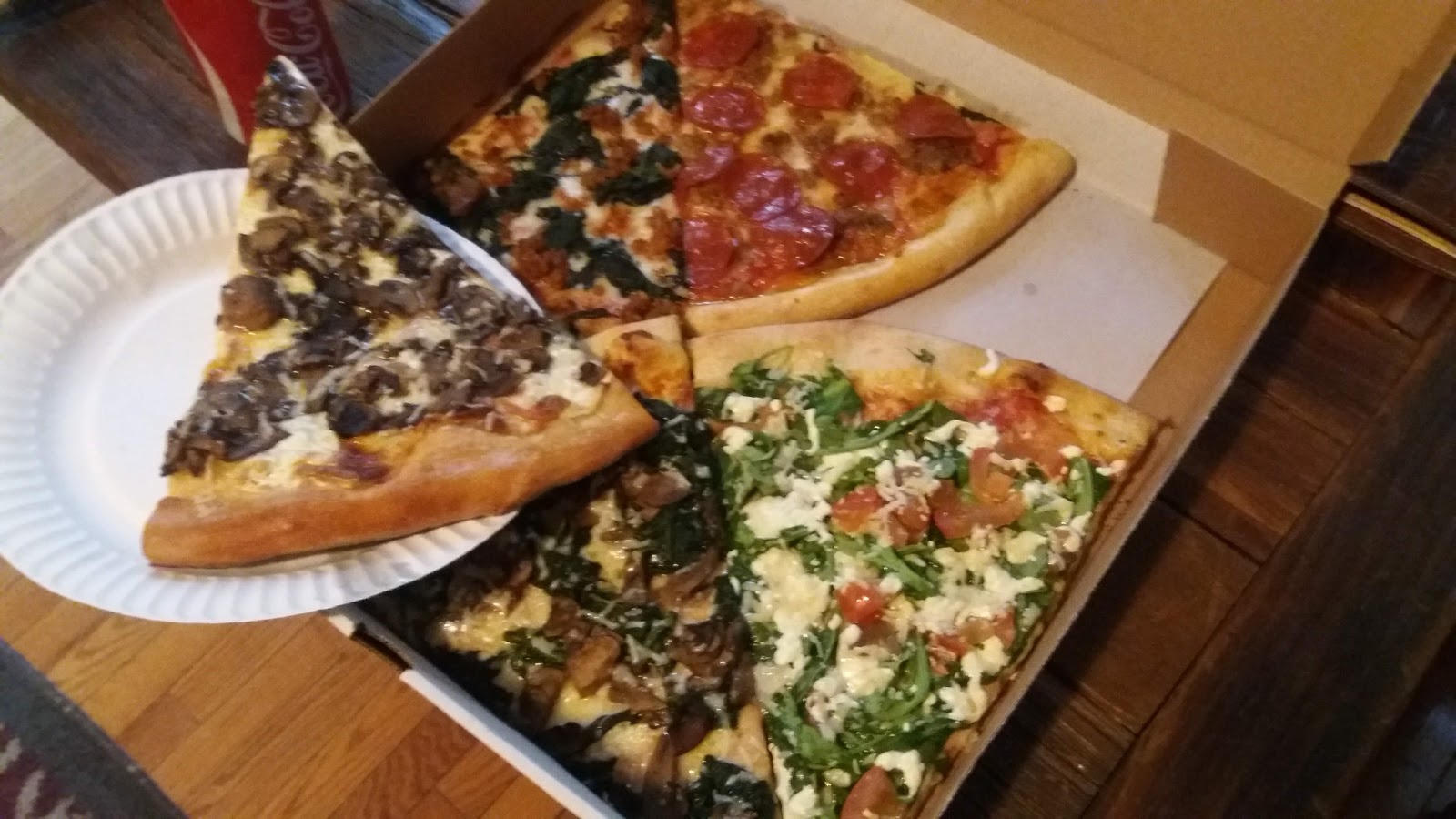 As an option to having to choose toppings on a pizza, we've really fell in love with pizza slice parties. Okay, the use of the word party is probably overstating it but the excitement level is there, for me anyway. And when you get a hand-held, fast to eat, prepared meal that has literally no clean up, then movie night becomes a great possibility. We get off our devises, start conversations, have a look at each other or at the very least, we listen to each other's gripes or our odd takes on life. And when you're eating pizza, you're generally in a good, receptive mood. So yeah, I'll say it, it's a party!