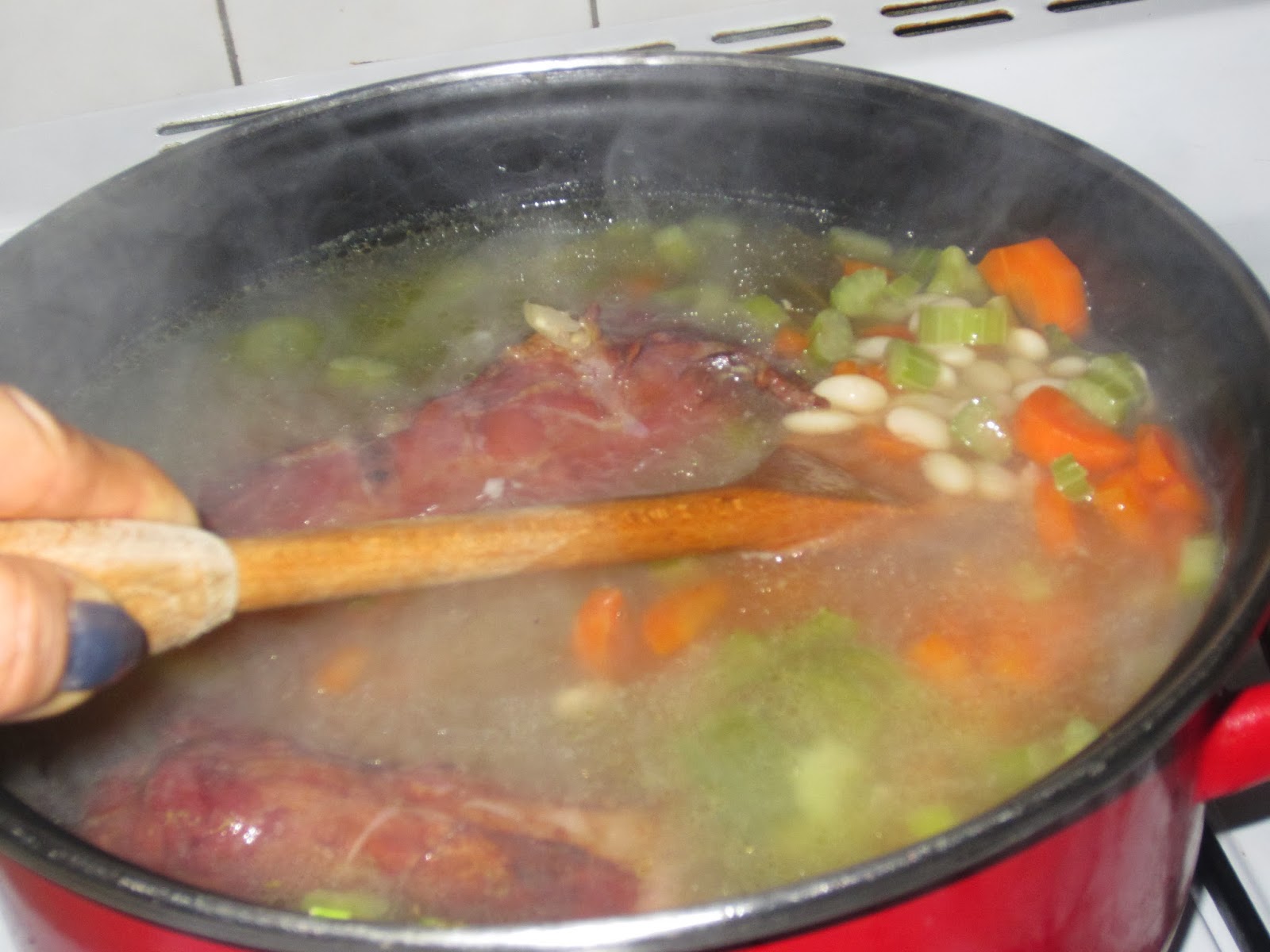Actually, what I was trying to make was Great Northern Beans, white and creamy with the salty smoky ham flavor throughout.