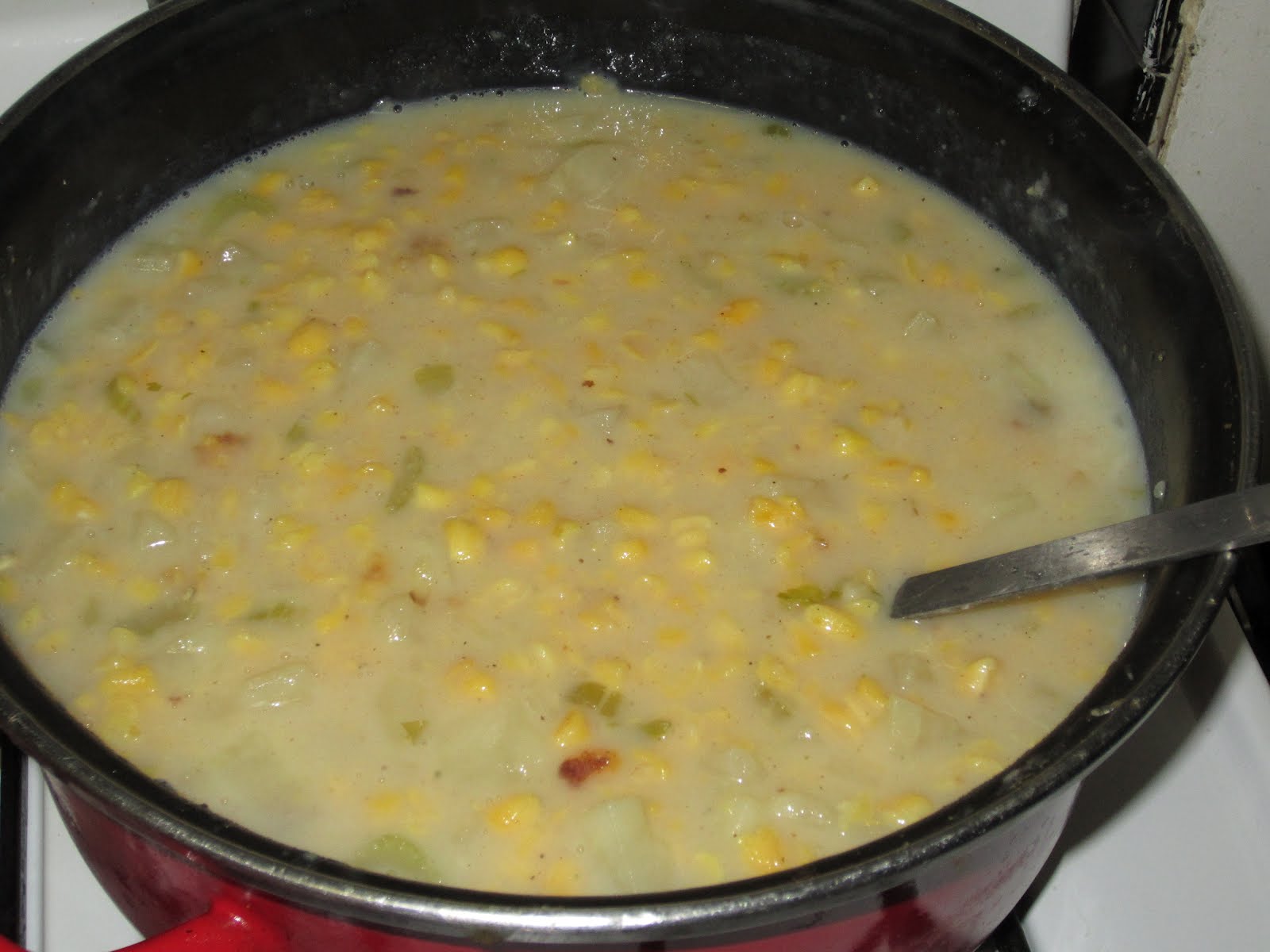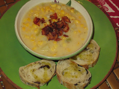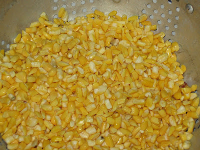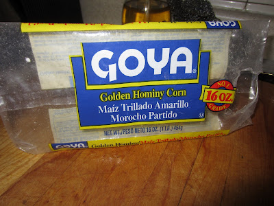 So anyway this time I was searching for a new bean or grain. I stumbled upon a Goya Golden Hominy Corn. Sounded great, I love hominy but never had it like this. There was a recipe for Corn Hominy Chowder on the back. Yes!