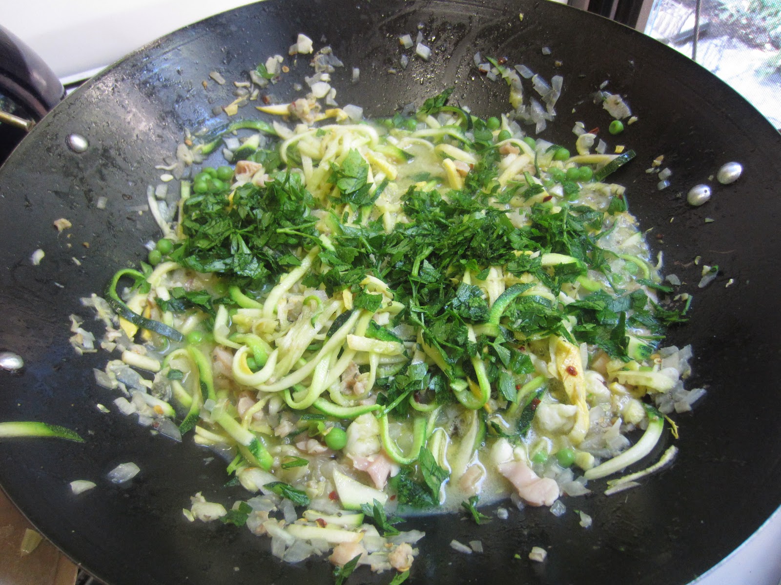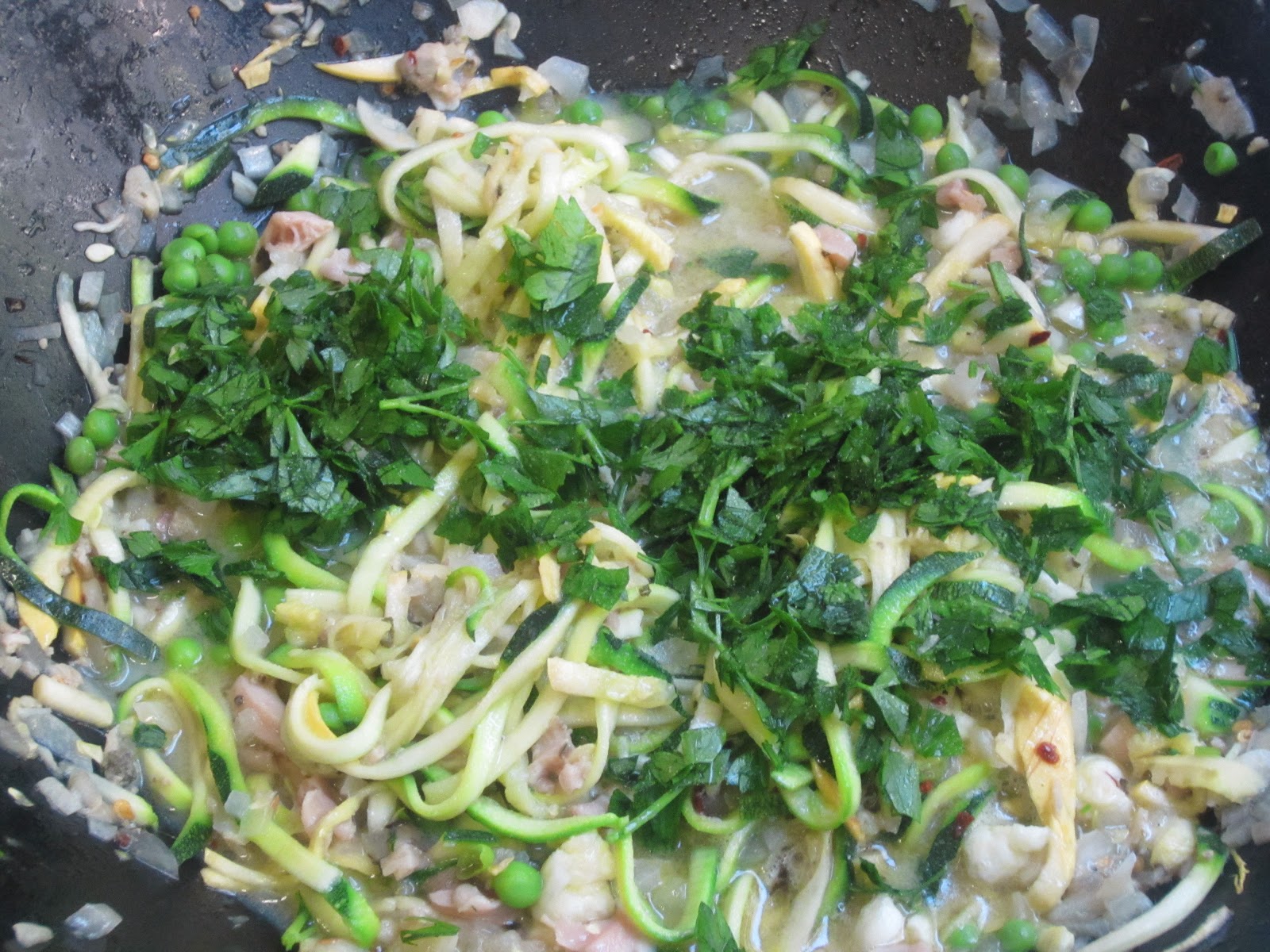 The 'noodles' stay slightly firm, don't let them mush out on you. Only 3 minutes or so is needed for the actually cooking. So good with red pepper flakes and shaved parmesan.