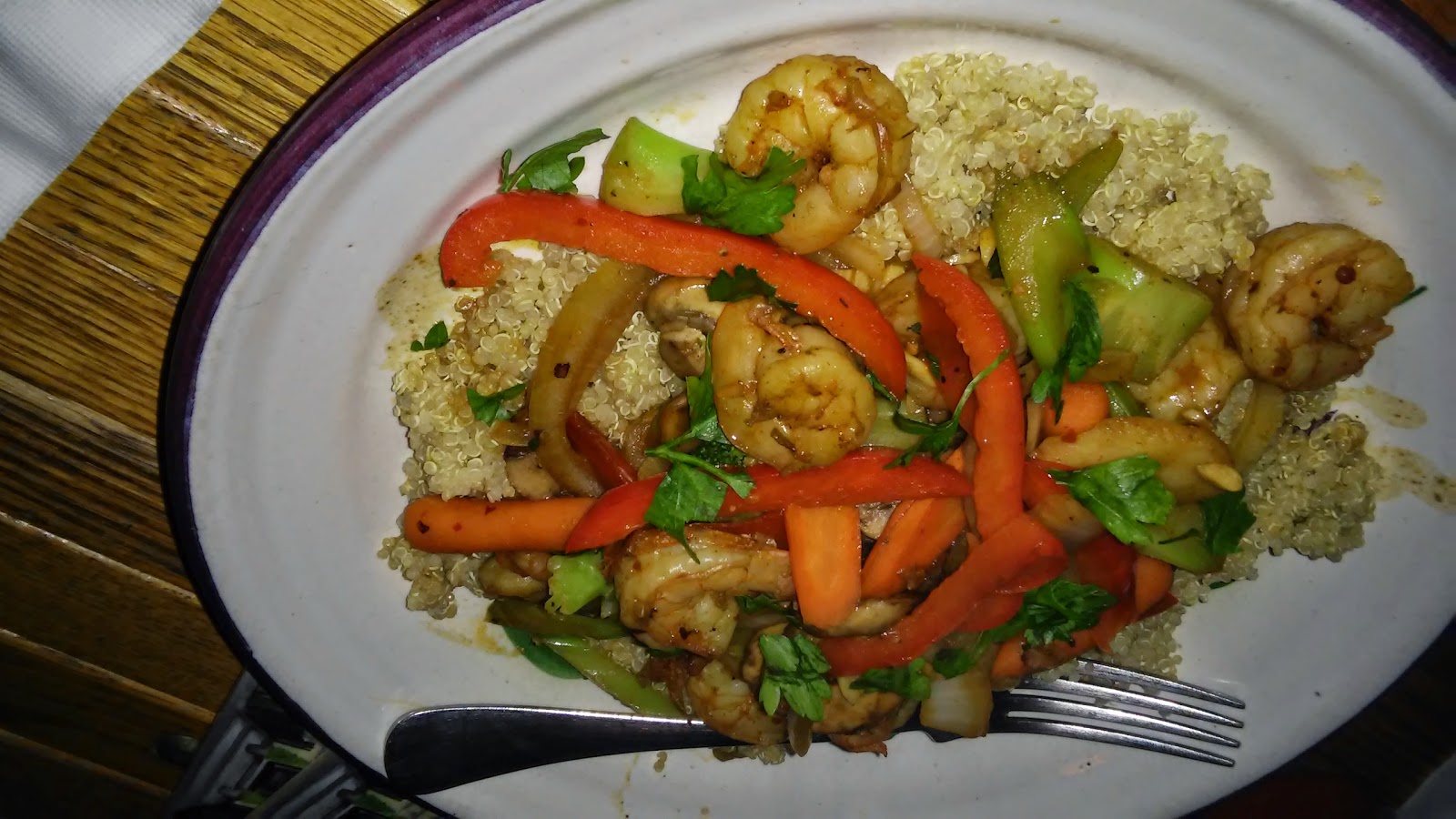 Asian Shrimp and vegetables over quinoa. Something weird about this picture. I think it's upside down. Sometimes things just seem a little off. I read something this morning about ADHD and how we've increased prescribing medications for it by 50% since 2008. We joke about speaking at lengths about things we know nothing about around here. Since I feel working in retail is also a science of gathering various data about society, I myself have noticed a definite change in mainly caucasian middle class women, mothers, I'd say age group 30 - 45. They seem super distracted, unable to focus, or concentrate on what the other person is telling them. They are able to spit out about 20 questions in one breath but seem to have no desire or ability to listen to responses. Appearance wise they seem to have it together. They are slim, impress as to undergo routine exercise. I'd call them nervous, agitated, balls of negative energy. When I see one coming at me, I take a deep breath and prepare mentally. I've pondered this a lot. What causes this? Are they just mothers in today's society, living in New York? They seem to probably have jobs, married, with toddlers but still need to get a lot done in the world, in their homes, for example, a kitchen remodel. That's a lot to juggle.