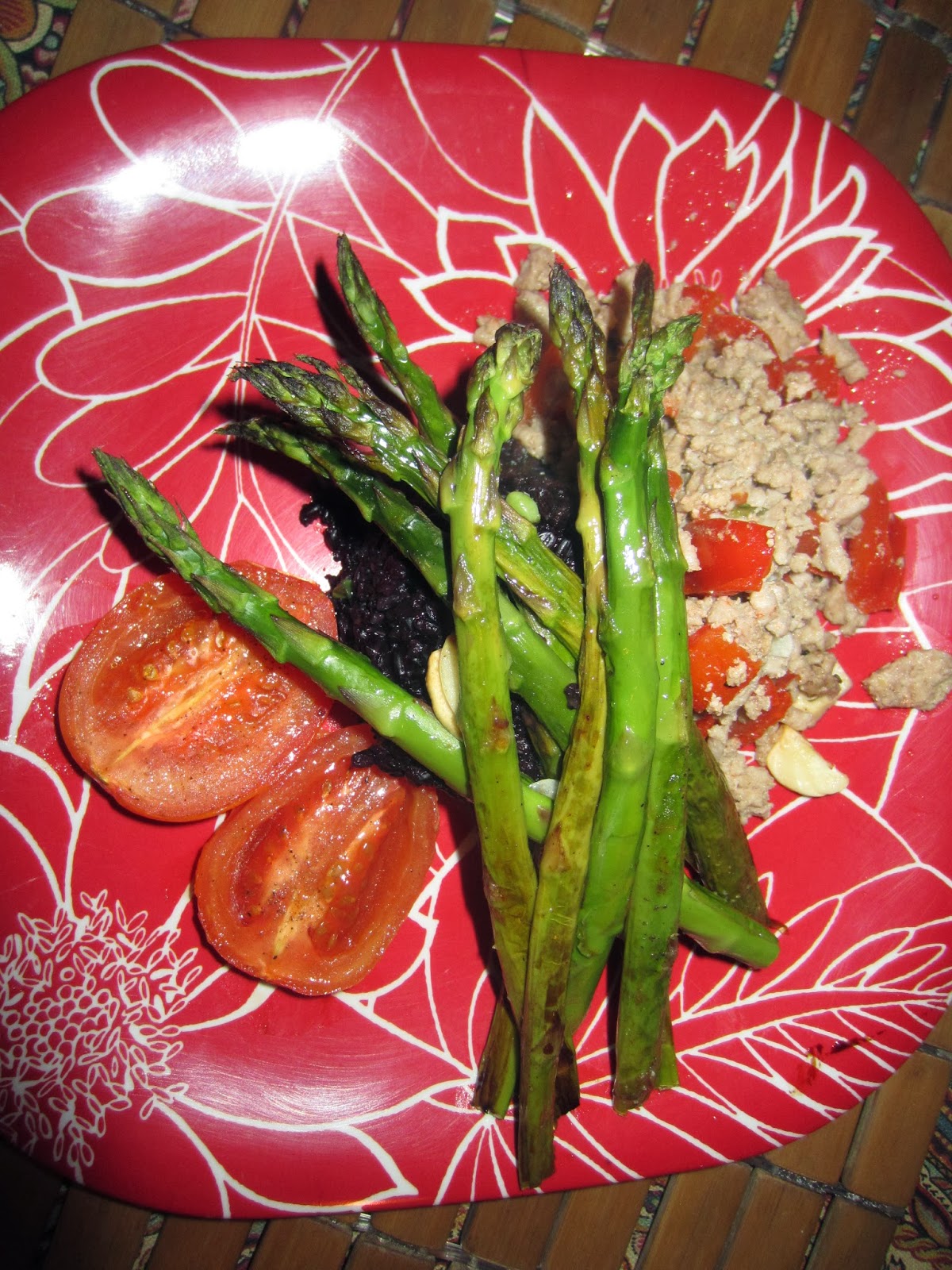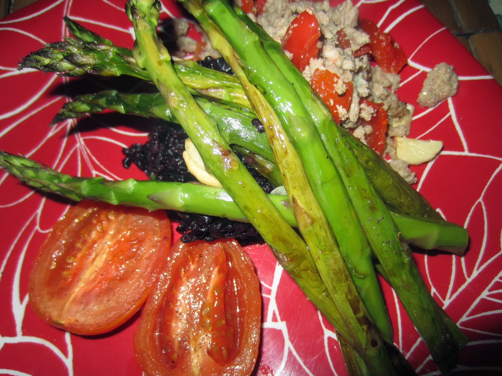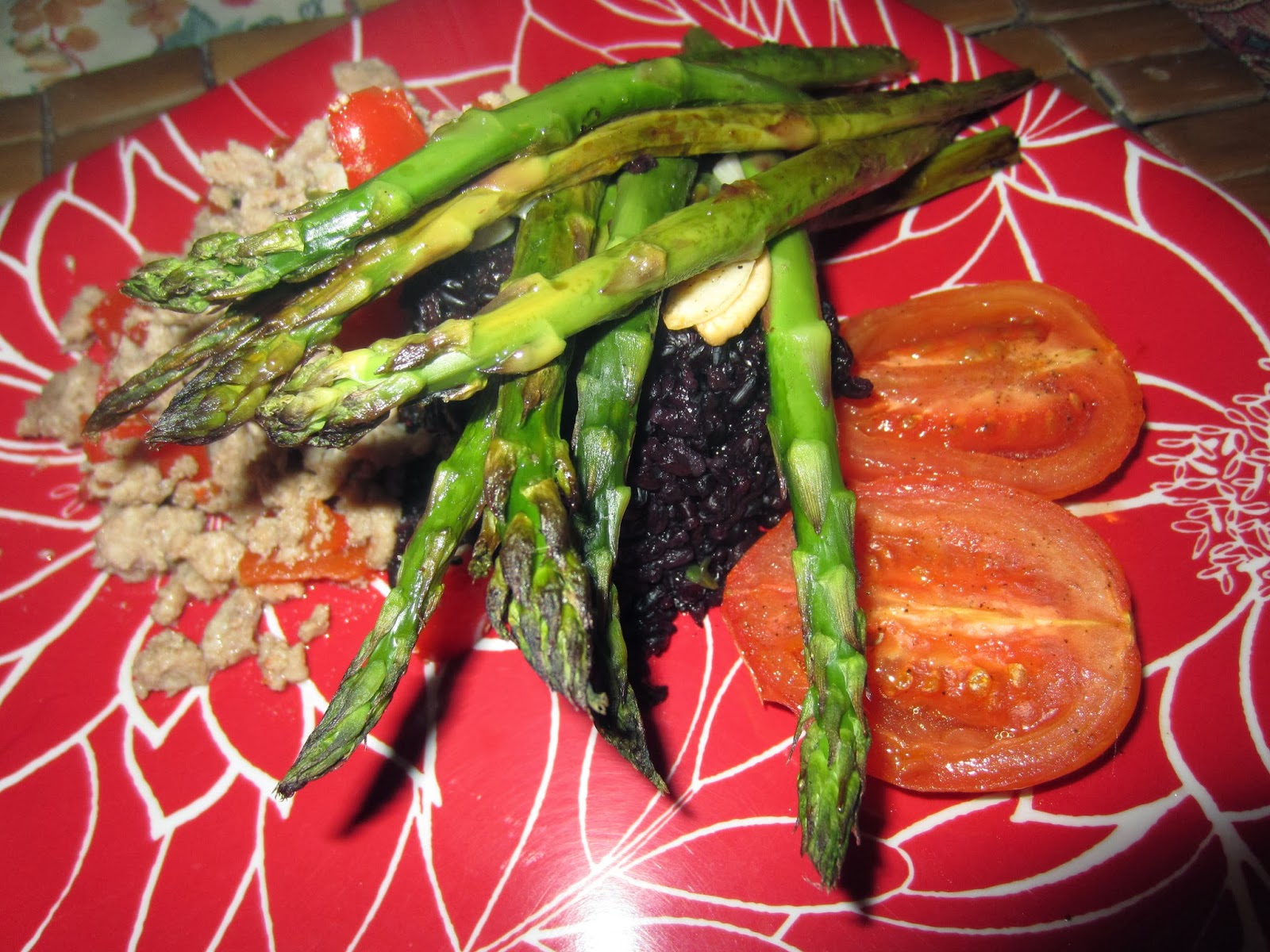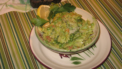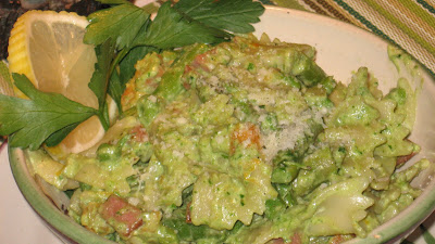 The bright green color is refreshing and the ricotta gives it just enough smoothness to make up for all the lost olive oil, although I did use some. It tastes like a rich cream sauce but its not at all. The asparagus still has some bite and the peas just melt with the sauce while the thyme gives it fresh flavor. I'm stuffed after a small bowl.