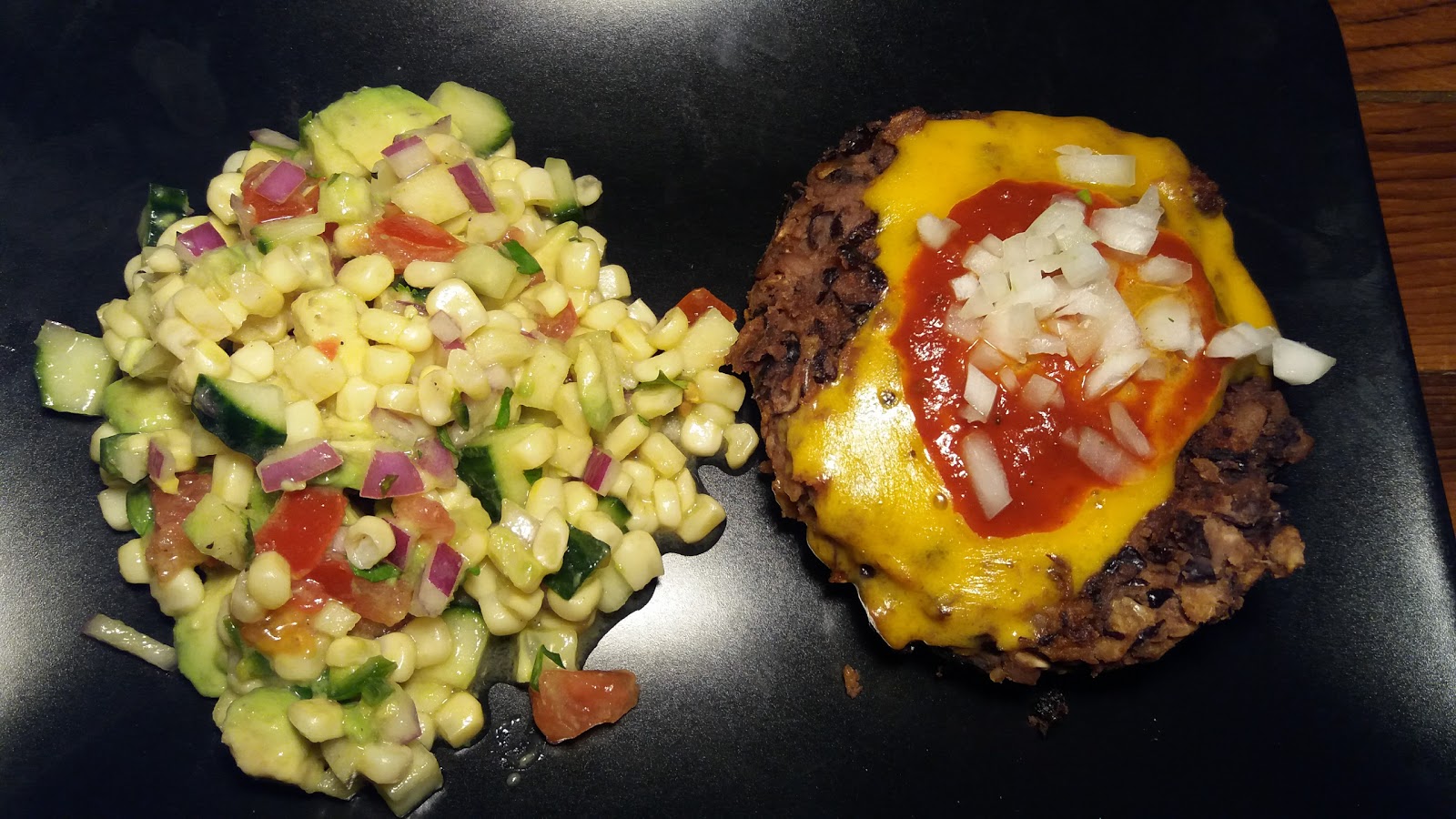 Black Bean Chipotle Burger with Confetti Corn Salad