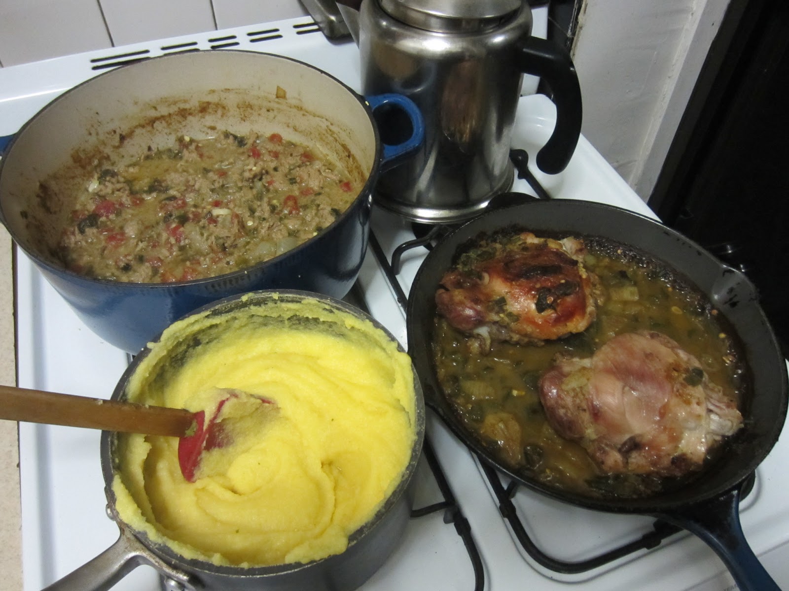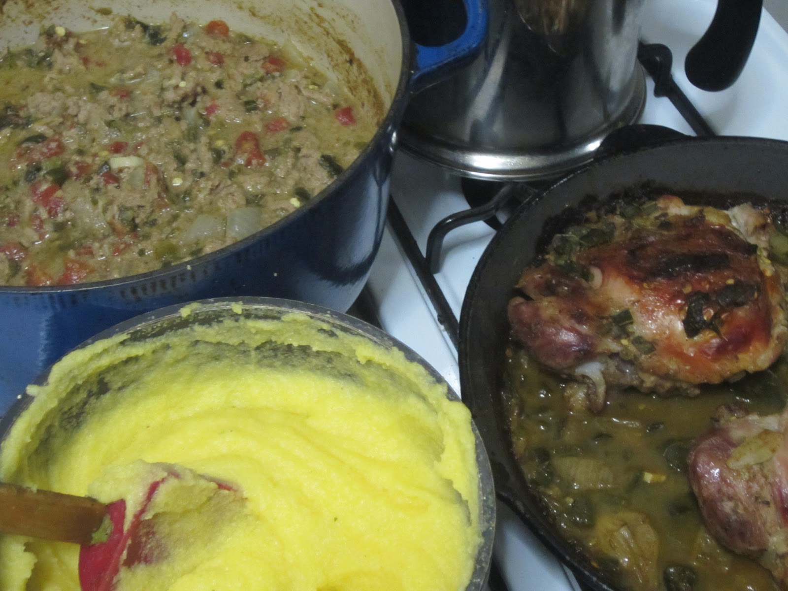 I also had turkey thighs unthawed along with a pound of ground turkey. Now I had forgotten that in order for this sauce to truly shine, she must have her pork meat to allow the flavors to develop. But I made it straight with the roasted chiles off a simple web recipe. It was good but I'm telling you when you eat that green chile sauce made right, there is something magic about it. The kind of sauce you want to lick the plate afterwards. I think it's because of that flour based element type comfort thing but mixed with the punch of a mild pepper and small bits of meat in a gravy like consistency.