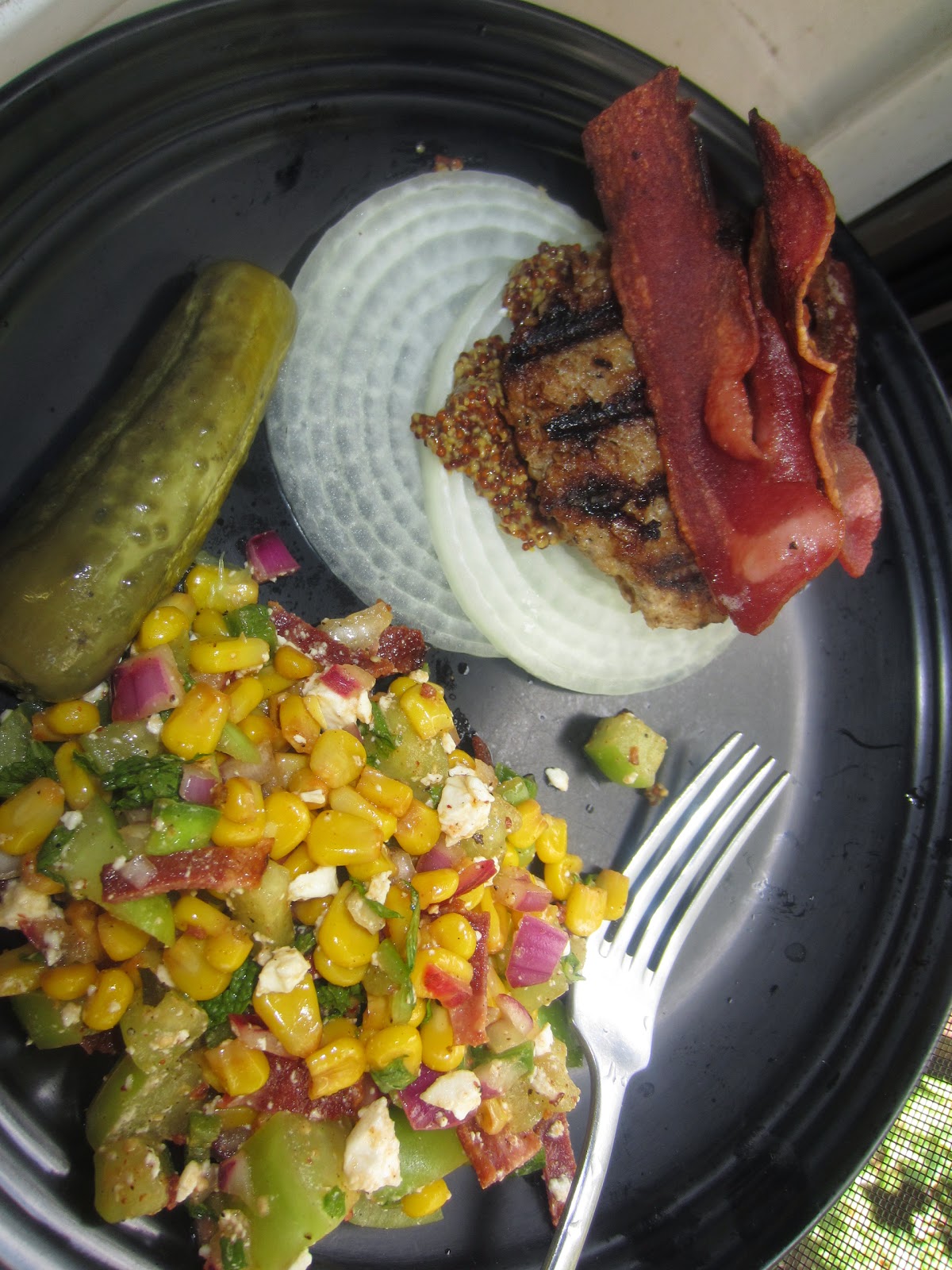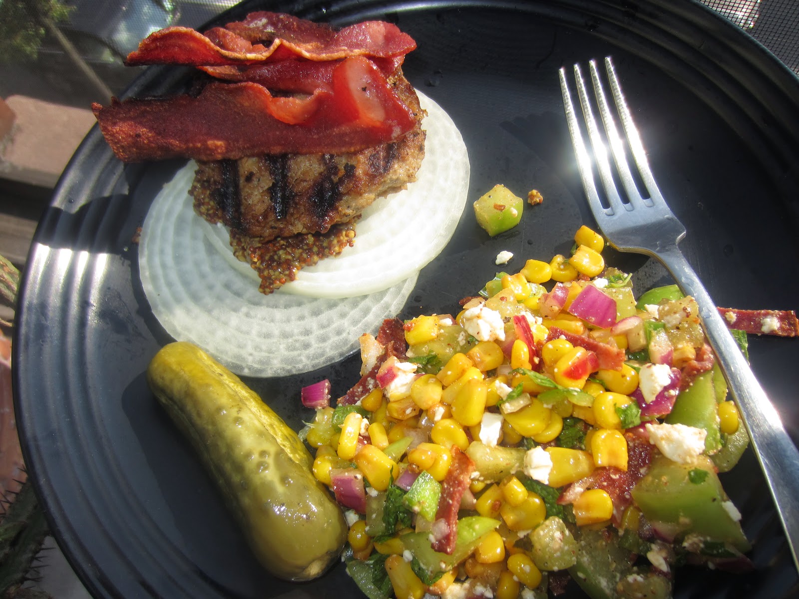 I know I made a slightly dry turkey burger with turkey bacon over Vidalia onion slices.