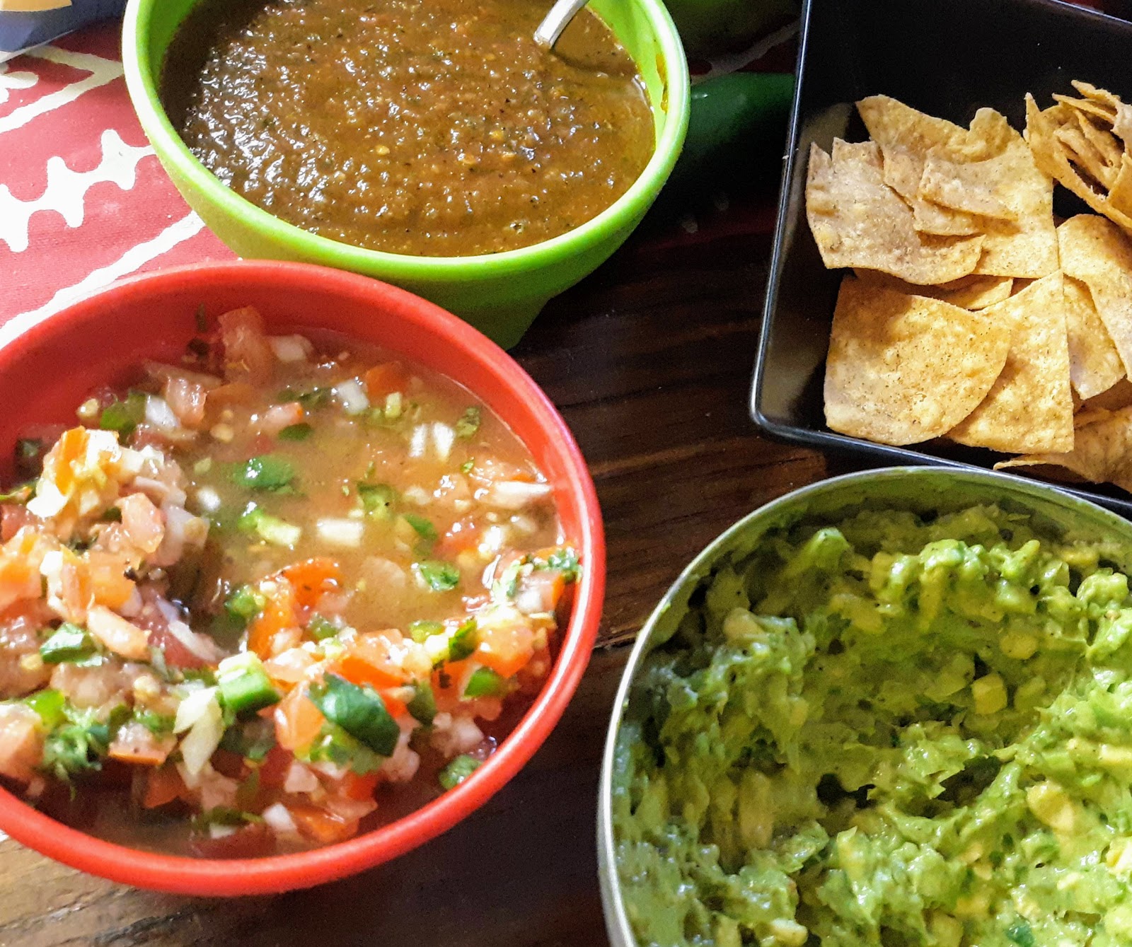 | Pico de gallo, Chipotle salsa and guacamole starters |