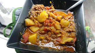 My sister said this is called Guisado, which I see is stew. It is a stew but not the kind I'm accustomed to making. This is my homage to one of my mom's home dishes that I cook to feel close to her or just get a little pick me up. Without a recipe, I only have my memory to recreate, which usually only gets me to 60% accuracy. So I either invent something new or still enjoy just how close I made it to my heavenly recollection. I made this with ground beef and potatoes. The potatoes soak up the spicy sauce and absorb many of the flavors. They should still hold their shape but not be too firm. I used Yukon Gold but they are not capable of taking in as much as Russet. I thought Yukon might have more nutrients but turns out it's not the case. About the same. Of course mom served hers with homemade tortillas to die for but I'll have no such delicacy.