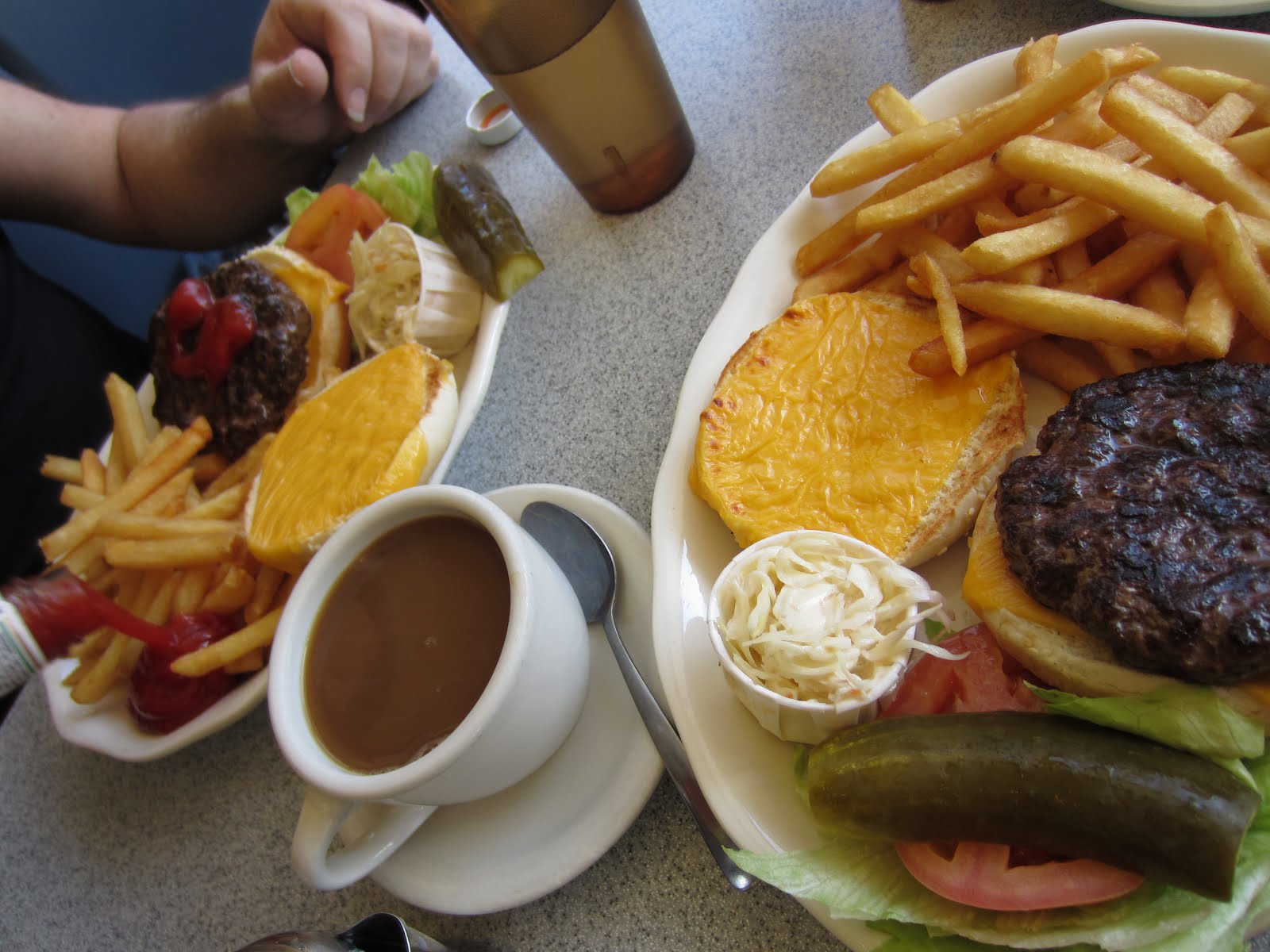Cheeseburgers and fries deluxe from Academy Diner. Something about diner food. It's the best possible food at that moment in time, hands down. All hail the Academy!