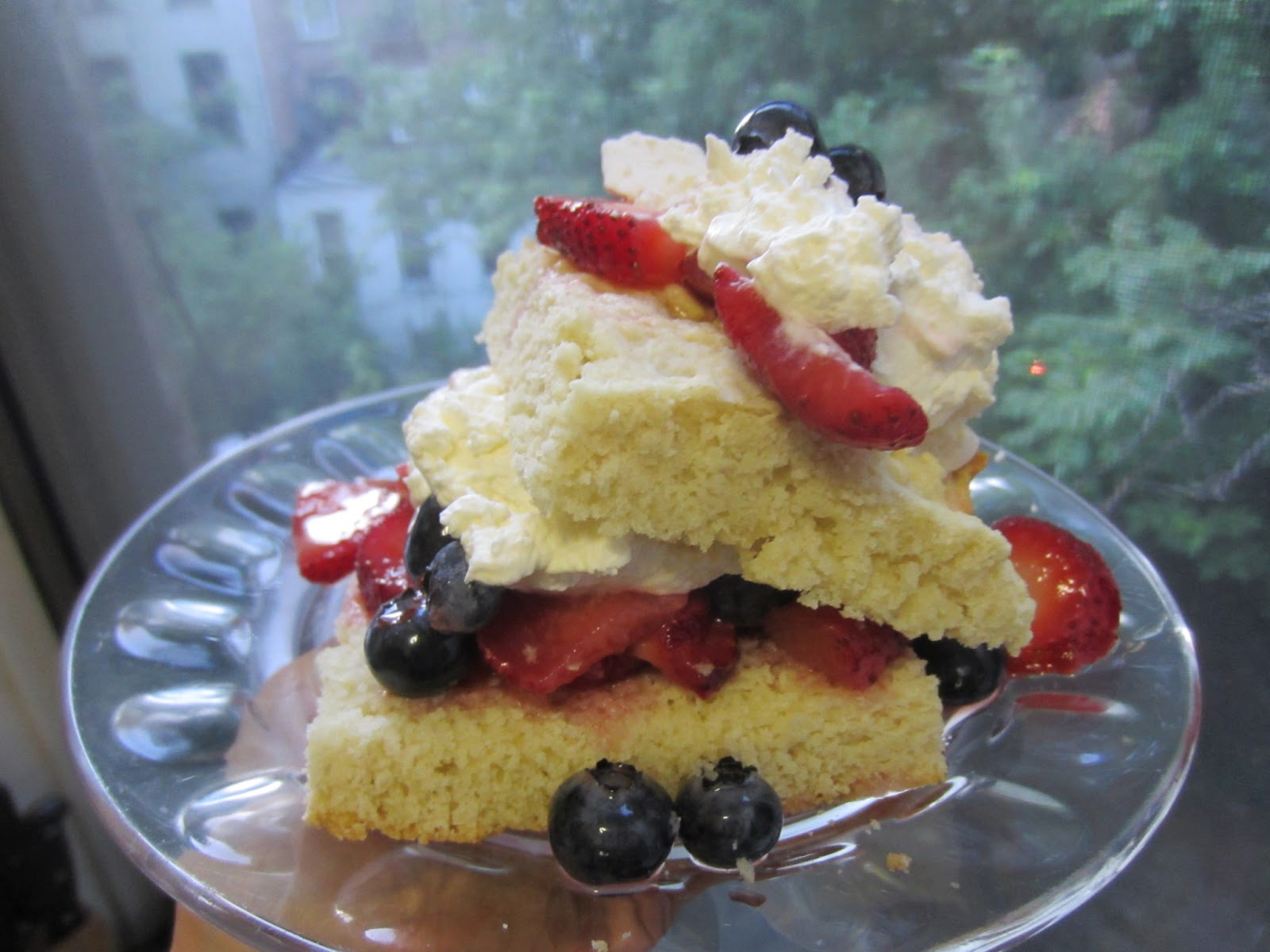 So after that, the wow factor instead became the 4th of July Strawberry Shortcake. I baked the shortcake the night before and it was light and fluffy, really good with the fresh whipped cream and berries.