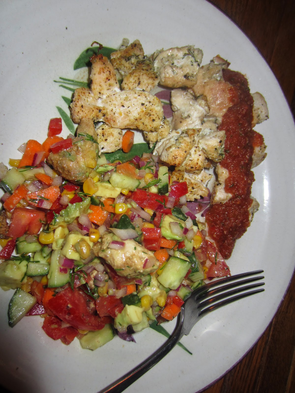 And this time I took my marinated chicken chunks and put them in a preheated 375 degree oven for 20 minutes. Much better than last nights fail, much juicier. An excellent recovery!