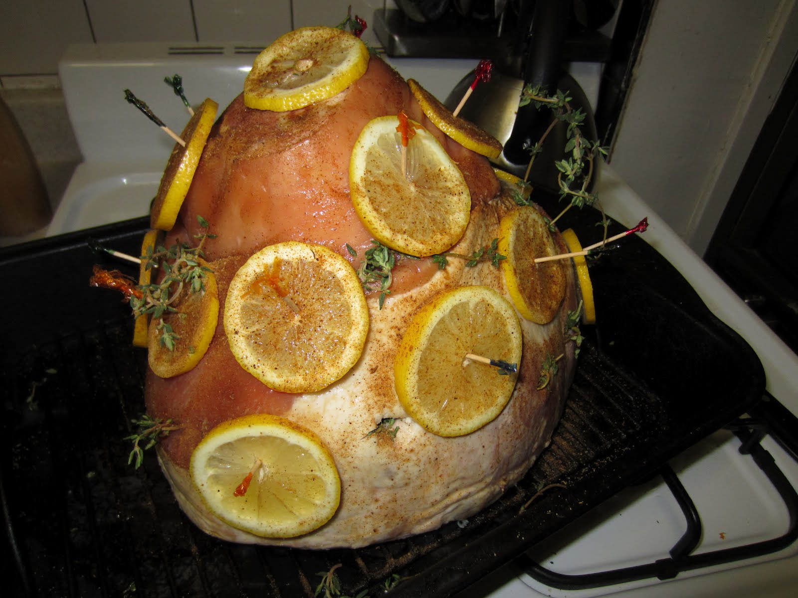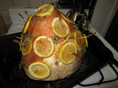 Had this ham that I purchased for Easter and froze for my big food festival during Big Ed's visit from Indiana but I put the skids on that plan when no one was even eating my roast pork. Path Mark will make you crazy with their jacked up prices and then out of the blue, this huge Smithfield smoked ham for under $10. I couldn't NOT get it.