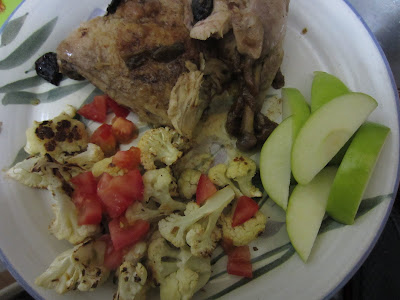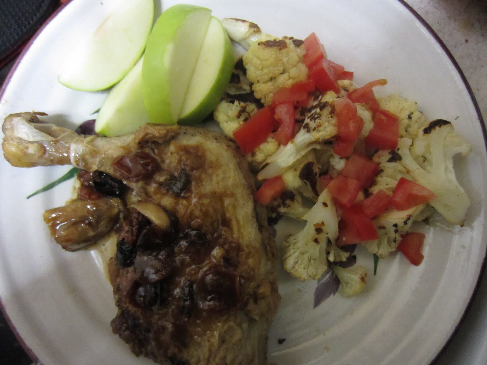 Just spooned a bit of the liquid over the chicken at serving. Good with warmed torts especially since I skipped the starch and just had the cool sliced granny smith apples and roasted cauliflower with tomatoes as the sides.