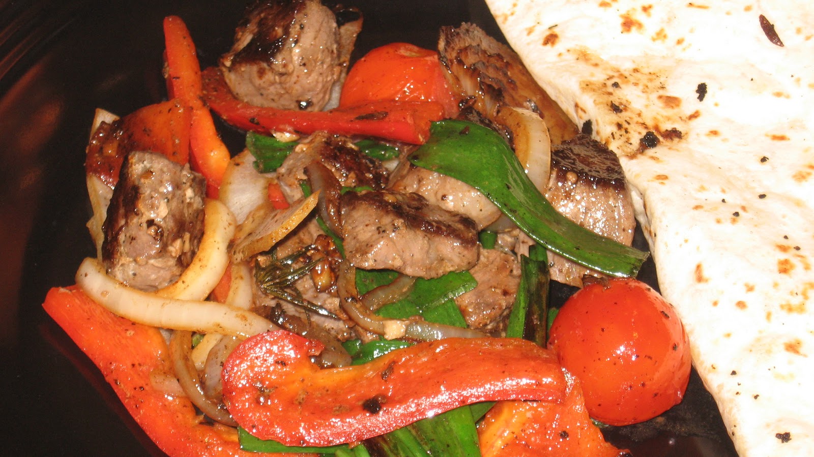It's the middle of the week, middle of winter, middle of my life but the end of our groceries. So tonight I made P a quick wok stir fry medley of leftover steak bites, red bell peppers, onions and cherry tomatoes. I wasn't hungry until I finished, so colorful and tasty! There is nothing better than getting just the right cook on the vegetables in a stir fry. That moment when all their flavor is locked in with the smoky char. They just begin to get limp yet have a good amount of crunch to them. I think I could eat a whole plate of onions this way.