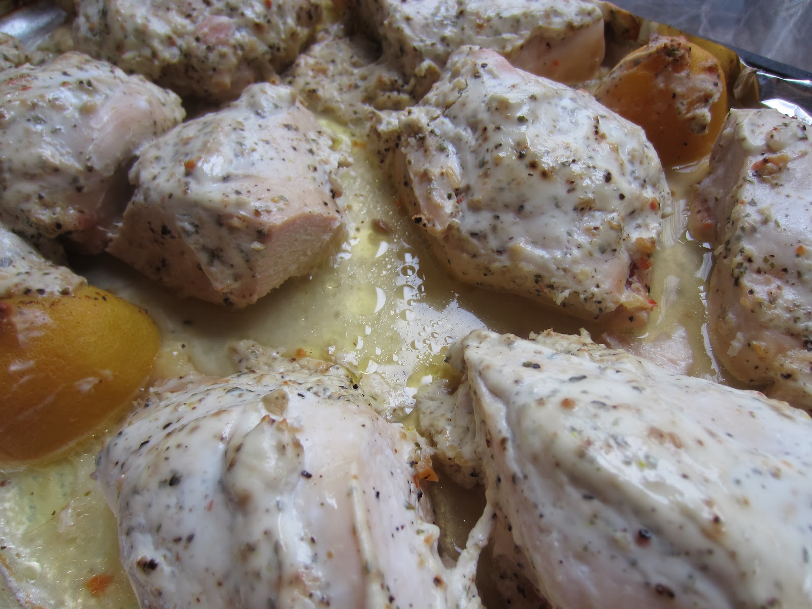 And that is basically what happened this week. I took the family pack of breasts, seasoned them with lemon pepper and slathered them with a container of no-fat plain yogurt mixed with a packet of ranch dressing and by the way....sooooo good! If your looking for a low calorie dip....there it is! I baked those for about a 1/2 an hour, let them cool for later.